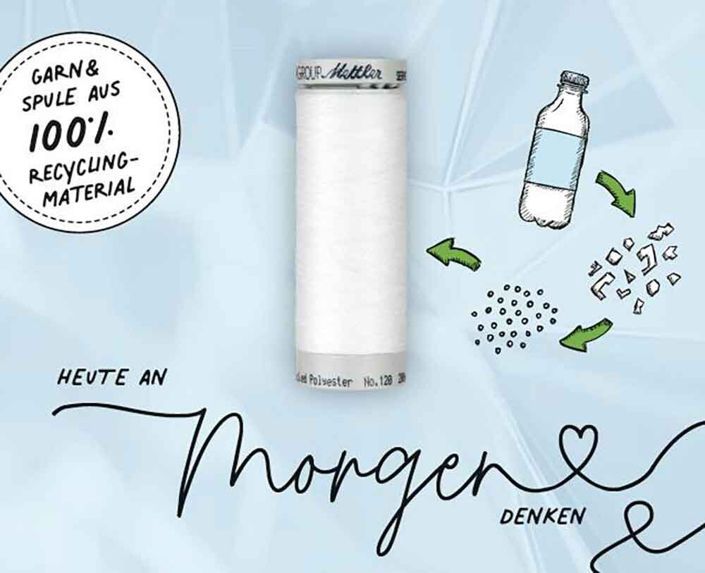 Das recycelte Nähgarn SERACYCLE aus 100% Post-Consumer recycelten PET-Flaschen ist der ideale Allrounder für das Fertigen ressourcenbewusster Nähprojekte.